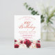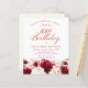 Rosas vermelhas e peônias cor-de-rosa-claro estão aninhadas em folhas verdes-escuras neste belo e único convite de aniversário.