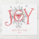 Típica única ilustrada de JOY, tipografia de Ano Novo, etiquetas de vinho espumante com cocktail de férias e tosse de pinho. Espalhe alguma alegria com este estilo de guardanapo festivo de festas de férias. Um brinde a um feliz 2023.