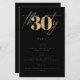 Menu moderno minimalista do aniversário de 30 anos com folha de ouro falsa trinta. Par com nossos convites de festas aniversário de 30 anos a preto e ouro correspondentes.