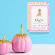 Convite para festas de Halloween, estética de halloween de cão. Tema cor-de-rosa com um cão segurando um truque de abóbora no Halloween ou um balde de tratamento. Este não é apenas um modelo; é o seu convite para festa de halloween totalmente editável. Ajuste todos os detalhes sem esforço para criar as convocações perfeitas para o seu encontro único.