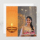 Compartilhe a alegria e a luz de Diwali com nosso cartão de saudação personalizado, roxo e branco, com diya brilhante, mandala laranja, a imagem de uma garota sorridente bonito com um cheio de prato de diyas brilhantes e o "Festival de Luz Feliz Diwali" escrito em trendy red white. Você pode mudar facilmente a imagem com a foto de seus entes queridos clicando no botão "personalizar".