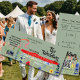 O tema do Festival Wildflower convite para o casamento. Um tema do festival moderno convidando seu convidado para o seu casamento. Todas as informações são facilmente personalizadas para suas informações. Nomes e datas Parte de uma suíte de papéis de carta de casamento.