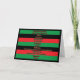 Um cartão de Kwanzaa que indique os sete princípios do feriado e de seu significado nas cores do verde, do preto e do vermelho