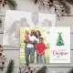 Este cartão de Natal apresenta um simples design minimalista acentuado com um gráfico de uma árvore de Natal enfeitada com um arco vermelho e verde no topo. Personalize este cartão com as suas fotografias familiares favoritas e adicione uma mensagem pessoal no verso.