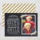 cartões com fotos de feriado personalizados com barato simples para personalização. Este design de diversão apresenta uma tipografia de estilo fofinha, escrita à mão, em um fundo falso de quadro com fita de washi listrada em ouro ao redor da sua foto. O texto diz: "Espero que os feriados lhe tragam muitas razões para sorrir". Personalize-o com suas fotos, nome da família, ano ou outro texto personalizado. O verso tem espaço para fotos ou texto adicionais. Use as ferramentas de design para editar o texto, adicionar mais fotos e criar um design de cartão com fotos de feriado exclusivo.
