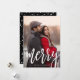 Este cartão com fotos de Natal apresenta a palavra "feliz" em um moderno roteiro manuscrito. Sua foto é exibida atrás. O fundo é um padrão polkadot preto e branco.