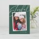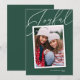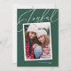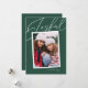 Este moderno, porém elegante cartão com fotos de feriado apresenta um belo fundo verde-escuro com "Joyful" em um roteiro de caligrafia branca e uma foto. Este design acomoda uma foto vertical do solteiro na parte frontal da placa. No verso está o mesmo plano de fundo verde, ao qual você pode adicionar outra foto e/ou texto adicional selecionando a opção "editar usando a ferramenta design".