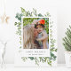 Este Natal de texto personalizado | cartão com fotos de férias pintado de aquarela eucalipto, folhas verdes e impressão de xadrez de inverno verde no verso. Mande alegria de férias para sua família e amigos.