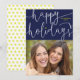 Um design com script moderno que desejava feriados felizes em uma paleta de cores brilhante amarela e marinho. Personalize esta design com a sua foto de família, saudação e nome para torná-la sua. A cor de fundo do marinho também é facilmente alterada nas configurações de "Personalizá-lo"! Fotografia de Antonio Guillem