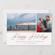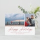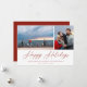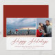 Mínimo Moderno Festivo, roteiro de caligrafia vermelha "Felizes Feriados" com respaldo vermelho sólido, 2 fotos de cartão de Natal.