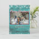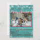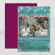 Adorável cartão com fotos de cumprimentos de natal russo. Fundo russo azul com flocos de neve brancos. Cartão de saudação de fotos de Natal.
