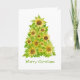 O cartão de Natal do girassol é projetado de uma pintura da aguarela dos girassóis na forma de uma árvore de Natal por Julia Morrill