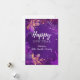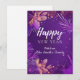 Um cartão de Ano Novo com um fundo roxo vibrante com flores bonitas e um design de fogos de artifício, ideal para enviar votos a entes queridos no início do novo ano.