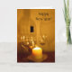 Aqui está um cartão de Ano Novo que evoca uma sensação de calor e aconchego! Copos de vinho, e garrafa de vinho com uma vela acesa lançando sombras na parede. E é fácil personalizar a mensagem interna.