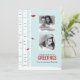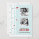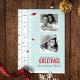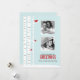 Lindo cartão de Natal personalizado apresenta uma bela ilustração vetorial de uma cena invernal caprichosa de pássaros vermelhos empoleirados em bétulas em um belo fundo azul claro. Personalize com fotos de sua família e uma mensagem de sua escolha.