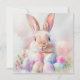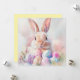 Um cartão de Felz pascoa com um coelho e ovos coloridos. Esta placa é plana e dupla face.