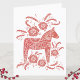 Uma tradicional arte popular sueca ou norueguesa Dala Horse em vermelho e branco. Arte original de Nic Squirrell. Mude a saudação de Deus Jul e o nome para personalizar.