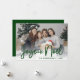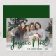 Este cartão com fotos encantador com sua foto, as palavras "Joyeux Noel", em uma fonte moderna em verde escuro e seu nome de família e o ano em uma fonte clara e clara em verde escuro na frente e uma coordenação de fundo verde profundo trará um sorriso para o rosto de cada destinatário. Todos vão gostar de ter uma nova foto sua e da sua família ou dos seus filhos. Para tornar este cartão seu, basta selecionar Personalizar este modelo, carregar uma foto favorita, adicionar seu nome de família e o ano. É super fácil!