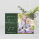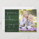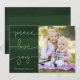 Que melhor maneira de desejar a vocês amigos e família uma feliz temporada de férias do que com este charmoso cartão com fotos pintado verde com as palavras "paz, amor, alegria" em um moderno roteiro escrito à mão branco? Personalizado com a sua foto favorita, este modelo de cartão de Natal 5x7 torna muito fácil criar, encomendar e enviar, deixando mais tempo para você passar com seus entes queridos!
