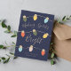 Design de cartão de feriado moderno brilhante e colorido com uma ilustração retrógrada das luzes de Natal que também pode ser personalizada com sua foto e texto. Foto de Emma Goldsmith no Unsplash