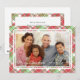 Este cartão fotográfico de Natal apresenta uma xadrez festiva em vermelho e verde vibrantes. No elegante roteiro branco, a mensagem "Feliz Natal" aparece no canto inferior esquerdo, enquanto o texto personalizado é impresso à direita, para você personalizar com seu nome e ano. O verso oferece espaço para uma mensagem pessoal. O design geral oferece uma estética de férias tradicional, perfeita para espalhar alegria de férias.