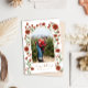 Um fundo branco moderno e flores silvestres vermelhas dão a este cartão de feriado arquitetado uma vibração boêmica com uma sugestão do núcleo da cabana. Adicione a sua foto de orientação do retrato e personalize o texto para personalizar este rico cartão floral de Natal e impressione a sua lista de cartões de férias com o seu estilo de tendência.