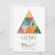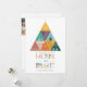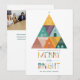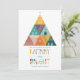 Este cartão de férias da empresa não fotográfica apresenta uma árvore de Natal geométrica festiva e brilhante com casas triangulares. A frente tem uma mensagem perfeita para as empresas imobiliárias e diz "NÃO HÁ LUGAR COMO CASA PARA OS FERIADOS. QUE SUA ESTAÇÃO DE FÉRIAS SEJA FELIZ E BRILHANTE", com um tipo colorido divertido. A parte traseira apresenta uma foto da empresa, um logotipo e espaço para uma mensagem adicional.