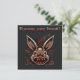 Esta Páscoa é preferencialmente esquisita e humorística, com um coelho zumbi que parece ter saído hetero de um filme de terror. Ele tem olhos amarelos e uma risada diabólica. O fundo da carta é uma cor escura, o que reforça a atmosfera assustadora da cena. Acima do coelho, a frase "Caçada Feliz de Ovo" é escrita em letras maiúsculas, com uma fonte divertida de preferencialmente. Apesar do lado ligeiramente mórbido do coelho, a mensagem ainda é divertida e lembra o espírito da tradicional caça aos ovos de Páscoa.