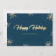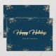 Cartões de férias azuis e dourados elegantes com flocos de neve e neve em um fundo azul. Um belo título feito à mão com efeito de folha dourada no centro. Personalize facilmente esses cartões de férias de floco de neve azuis e dourados com o nome da sua família e mensagem. Solicitações personalizadas são bem-vindas.