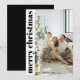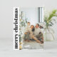 Envie desejos de férias calorosos com este cartão de Natal moderno e na moda preto e branco. Com design minimalista e tipografia elegante, é uma combinação perfeita de elegância e simplicidade. Adicione sua foto personalizada da família e personalize a mensagem para torná-la realmente sua. Este cartão de Natal trendy traz vibrações de Feliz e Natal Brilhante com um toque chic, mínimo.