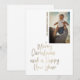 Cartão com fotos minimalista com a inscrição dourada "Feliz Natal e Feliz ano novo". Este Cartão de Férias de Natal pode ser facilmente personalizado com a sua fotografia e nomes.