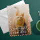 Envie este cartão de "Feliz Natal e Novo Ano" para fora nesta época de Natal e partilhe o rosto de seu bebê pelado com seus entes queridos. Afinal, seu gato faz parte da família! Personalize este cartão com uma foto de sangramento de cheio do seu animal de estimação e o texto de sua escolha na frente. Adicione outra foto ao quadro de estilo de foto instantâneo na parte traseira, uma legenda, uma mensagem personalizada de alegria e seu nome na parte traseira deste cartão de feriado. Você pode até alterar as fontes e as cores de fundo usando a função personalizar!