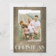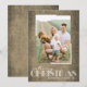 Sua foto favorita em um padrão de tecido marrom com seus nomes e saudações de Feliz Natal na parte de baixo em letras quicas. Selecione Matte para o papel mais pesado e High Definition para obter a melhor qualidade de foto.