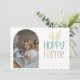 Cartão de Feriado de Foto de Páscoa Hoppy. Características, tipografia pastel com sotaque capilar, fotograma arquitetada e cor amarela de revestimento.