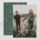 Envie cartões de natal alegres para amigos e família com esses Cartões de foto de Natal elegantes. O design apresenta a sua foto vertical favorita de cheio sangrando com "Joyful" em uma cobertura branca e moderna de script de caligrafia. Personalize o cartão adicionando seu sobrenome e o ano. A placa se reverte para exibir um padrão de folhagem branco contra um plano de fundo verde escuro personalizável. Os simples cartões de Natal impressionam todos na sua lista de cartões de Natal nesta temporada de férias.