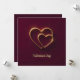 Dois corações sobrepostos com um contorno dourado em um fundo vermelho profundo, com um efeito suave de brilho. O texto "Dia dos Namorados" está centralizado abaixo dos corações.