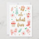 Um design divertido de cartão de Natal com várias fotos e a mensagem, Oh Que Diversão. É decorado com ilustrações bonitas de presentes, luvas, uma meia de Natal e uma árvore de Natal. Personalize com a foto da sua família, o nome da sua família e uma mensagem de férias. Criado para você por Blackberry Boulevard.