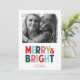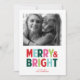 Celebre as festas de fim de ano com este cartão de foto de férias moderno e minimalista, apresentando um design simples e uma tipografia negrita colorida "alegre e brilhante"!