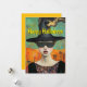 Um cartão de Halloween bruxo. A frente diz: Feliz Halloween. A parte de trás diz: É a Temporada Assustadora!