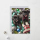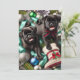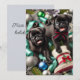 Cartão de Natal 13 x 18 cm com pugzinhos encantadores brincando alegremente com fitas e enfeites de Natal.