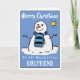 Um desenho animado de boneco de neve em um cartão festivo de Natal. Cartão de Natal para uma bela Namorada.