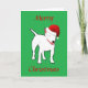 Este cartão de Natal bonito apresenta um touro aterrorizado em um chapéu de Papai Noel e faz um cartão de excelente para qualquer amante de cachorro especialmente aquele que possui (ou simplesmente ama) touro terriers.