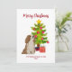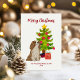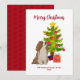 Cartão de Natal do Rei Cavalier Charles Spaniel, bonito, com árvore de Natal e presente. Personalize com seu texto.