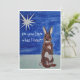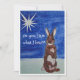 Cartão de Natal que representa uma cópia do quadro de cor d'água pintado à mão do coelho e da estrela. As palavras dizem: "Você ouve o que eu ouço?"
