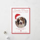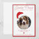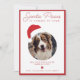 O Santa Paws está chegando à cidade! Personalize com a foto do seu cão, gato ou qualquer outra foto de animal de estimação para o cartão de Natal mais adorável. O seu bebê peludo estará completo com um chapéu de Papai Noel vermelho perfeitamente colocado no topo da cabeça. O design do cartão apresenta uma borda vermelha, fonte script e uma pegada de pata vermelha que certamente tocará o coração dos seus amigos e familiares.