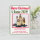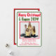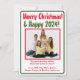 Este é um cartão de Natal com espaço para foto. Inclui um visual moderno com uma fonte nevada e arte de azevinho no verso. O design permite endereçamento no verso ou amplo espaço para escrever uma nota pessoal.