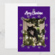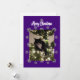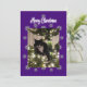 Festividades Cartão de Natal com gato de fraque na árvore.