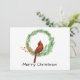 Este doce design de Natal é limpo e fresco. Situado em um fundo branco, esta delicada grinalda de sempre-verde é decorada com eucalipto e bagas vermelhas. Na parte inferior da grinalda há um cardeal vermelho. No verso do cartão há uma caixa de texto que permite adicionar sua própria mensagem de Natal. Se preferir, você pode excluir a caixa e escrever sua mensagem.