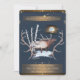 Personalize este Cartão de Natal de Alce Macho Único "De Um Tipo"! Ele apresenta um majestoso alce macho em pé em uma montanha nevada em um bosque de árvores de álamo, bramindo ao luar, cercado por estrelas douradas e bordas e as palavras edificantes..."Que Haja Paz na Terra"!