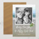Cartões de Natal para fotos da praia do Oceano. Personalizar com uma saudação e assinatura. Adicione uma foto de família ao modelo quadrado, com um pouco de estrelas-do-mar e um pedaço de santo no canto. O reverso é uma imagem de areia marrom.